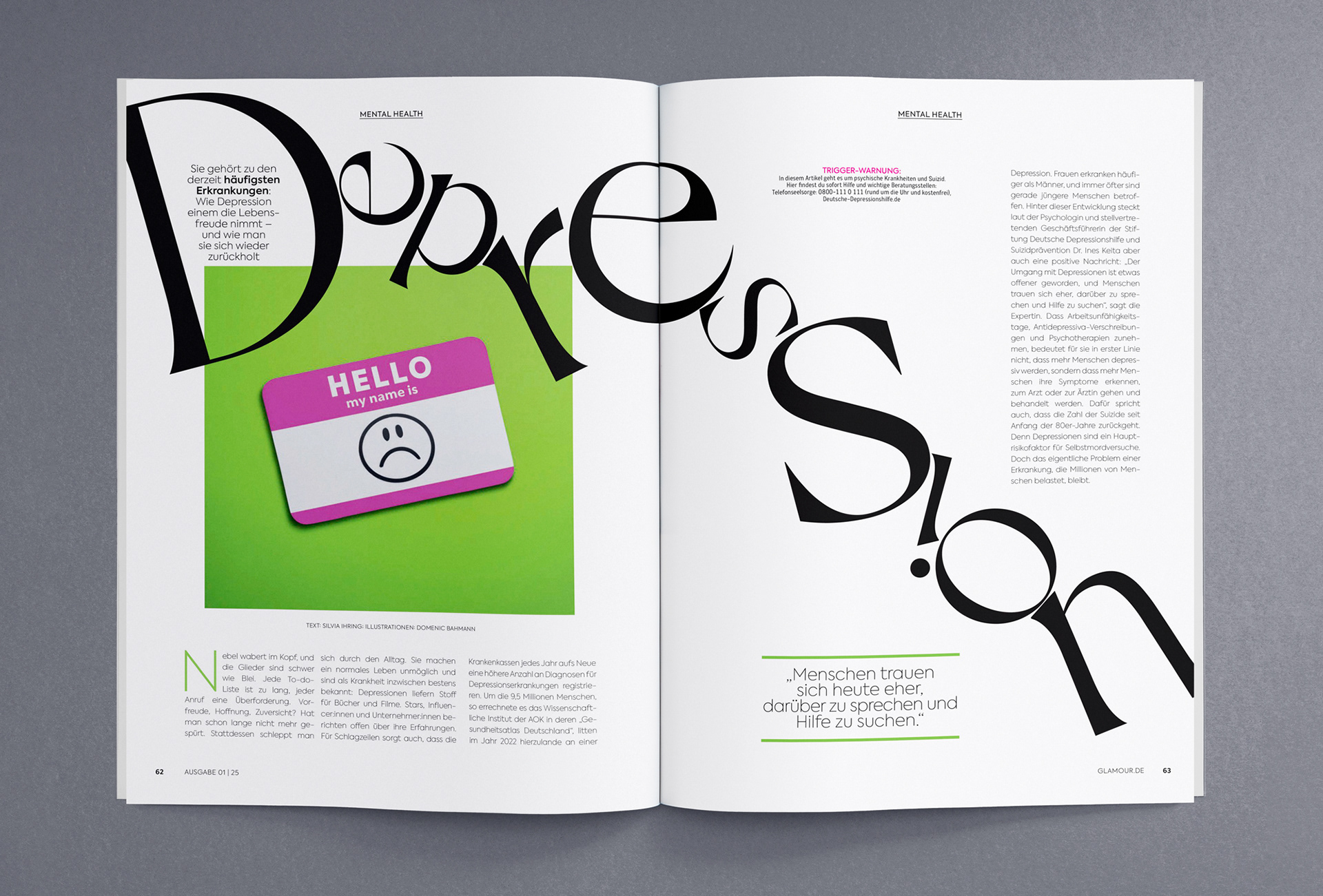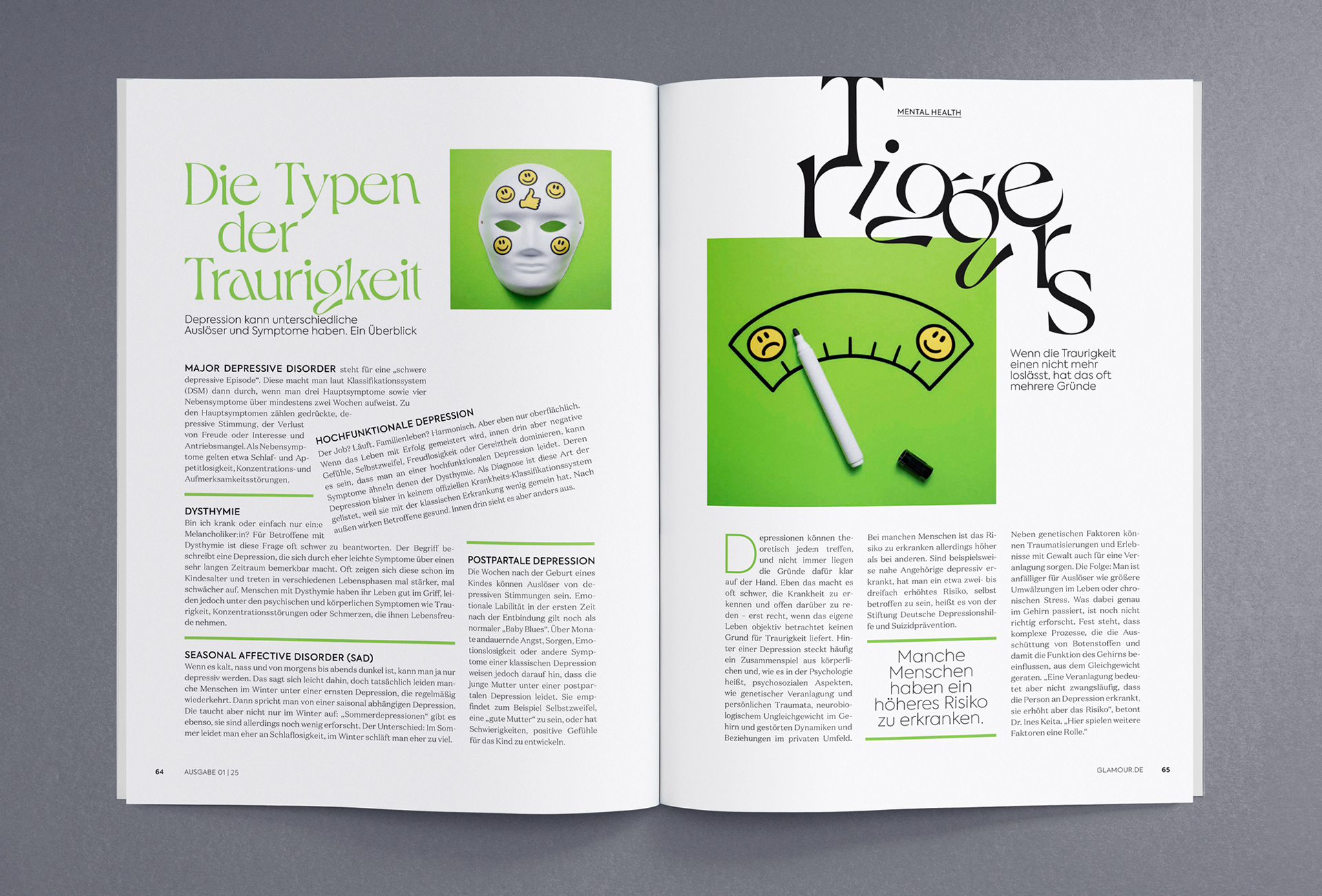 Glamour Magazine Germany 1/2025 - Depression - It is one of the most common illnesses at the moment: How depression takes away your joy of life - and how to get it back.