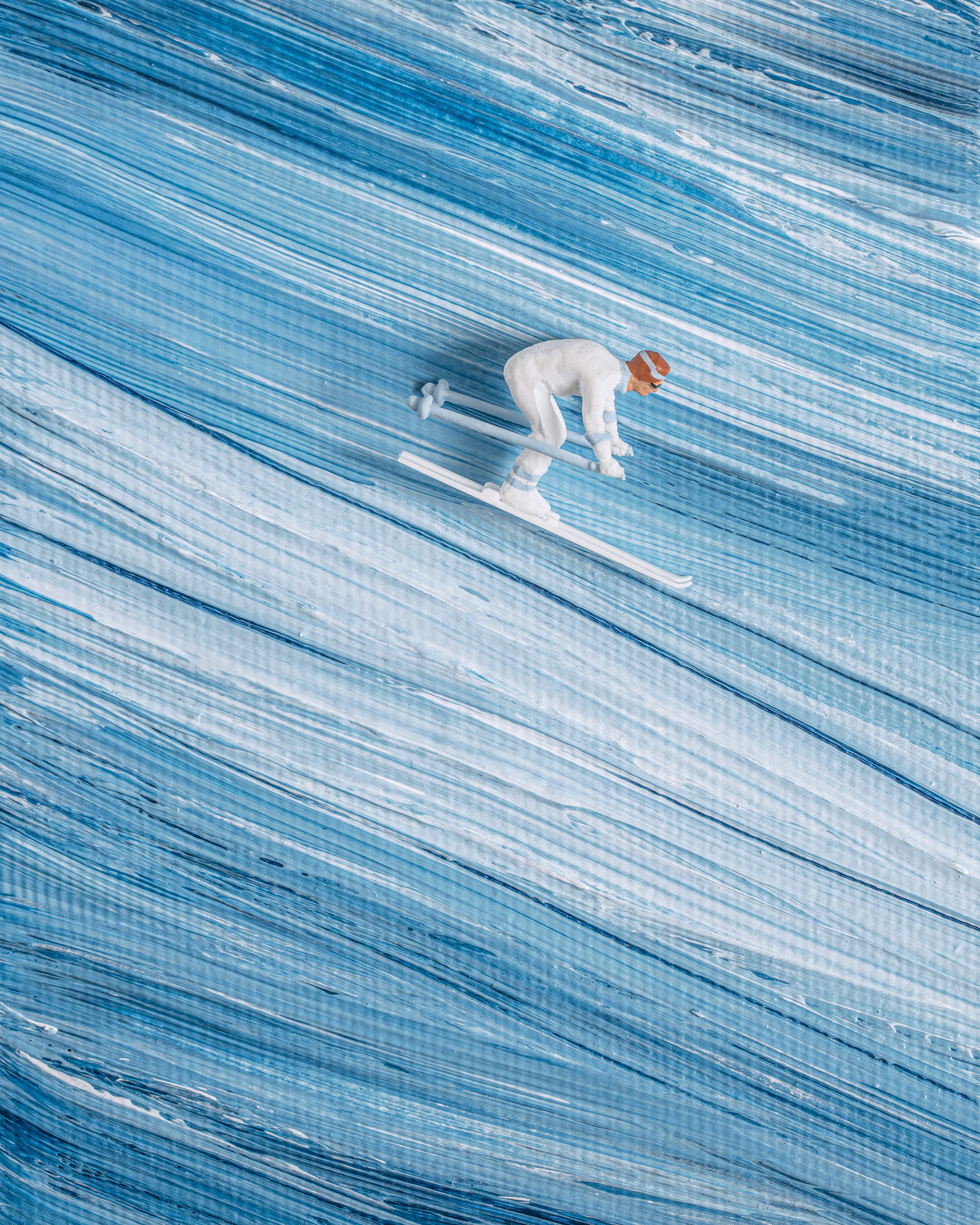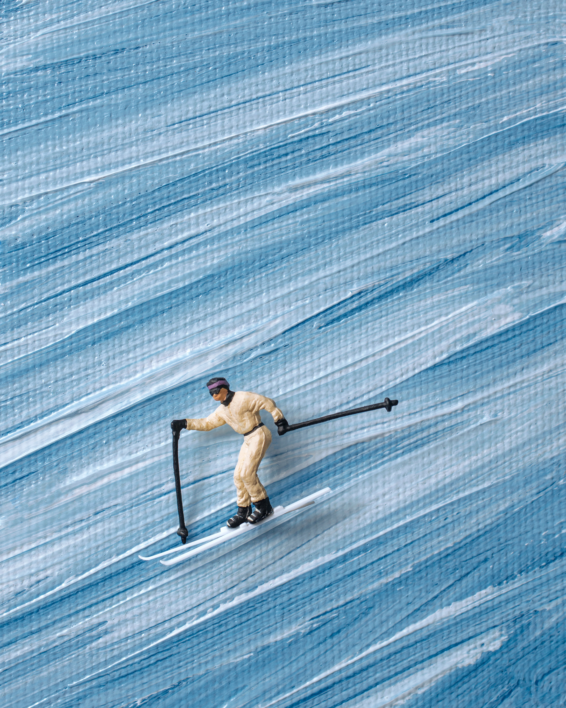 In Motion I-III (2026) Miniature skiers on acrylic