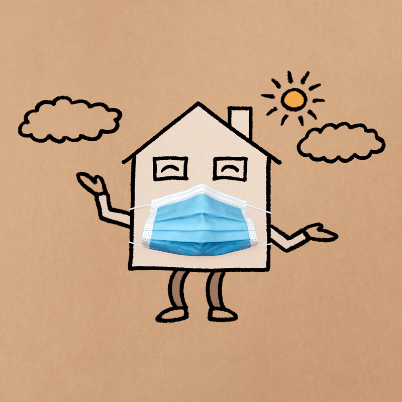 Editorial illustration for The Wall Street Journal – How Do Real-Estate Agents Show Homes During Covid? With Face Masks, Gloves and Some Ingenuity