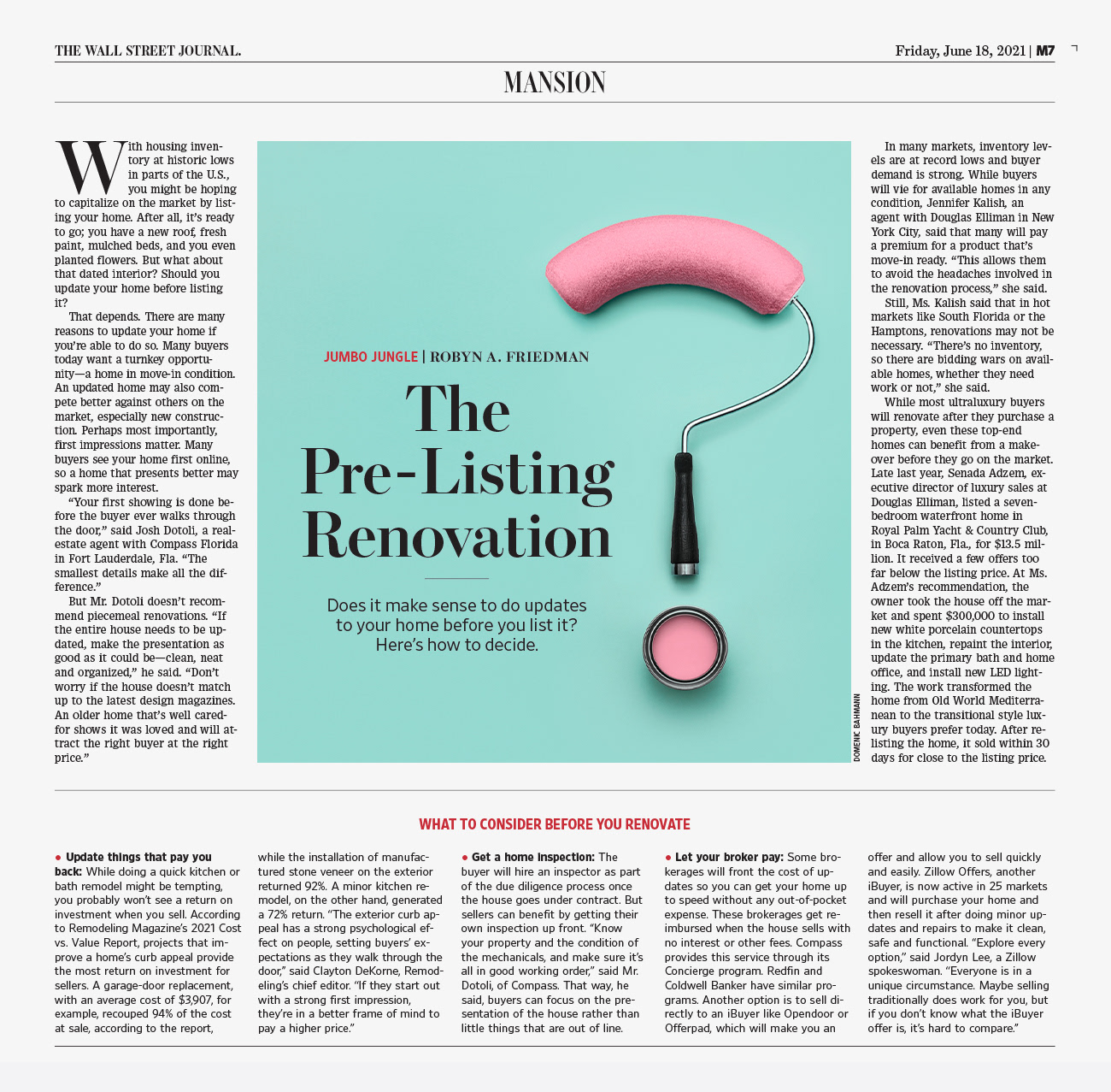 Editorial illustration for The Wall Street Journal – The Pre‑Listing Renovation – Does it make sense to do updates to your home before you list it?